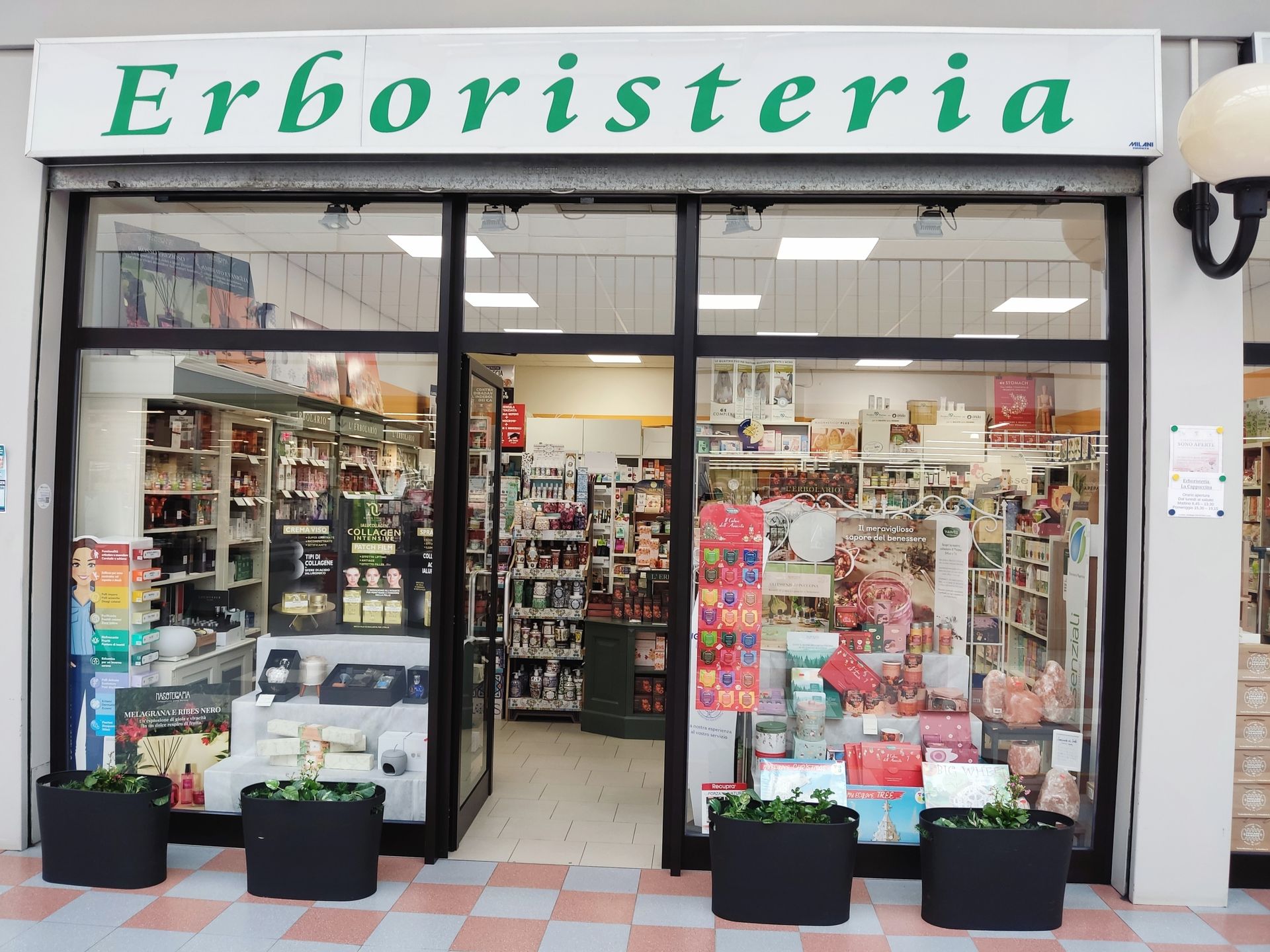L'ingresso dell'erboristeria, all'interno del centro commerciale Cappuccini